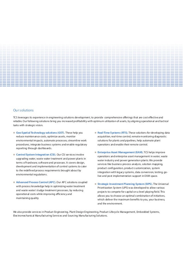 Tata Consultancy ServicesEIS 5 years 2 months. TCS Plant Solutions and Services. First of all EIS Engineering and Industrial Services is a common horizontal that serves every other vertical like.